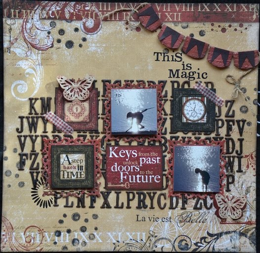 voici ma page pour un sketch sur zone sketch et qui est aussi un défi sur scrapzone pour leur défi crop en ligne. le monde imaginaire...